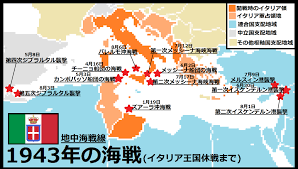 ・(7月10日)連合国 シチリア島上陸「ハスキー作戦」これを機にファシスト党瓦解・ムッソリーニ失脚・監禁(7月25日)イタリア王国のパドリオ政権降伏・枢軸国から離脱(9月8日)