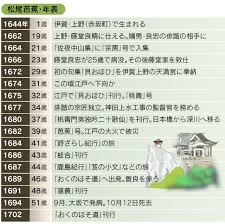 ・(11月28日)300年前(1694年)のこの日(元禄7年10月12日)、三重県伊賀市出身の江戸時代前期の俳諧師、松尾芭蕉(50)、死す 江戸を立ち東北、北陸を巡り岐阜の大垣まで旅した紀行文「おくのほそ道」がある
