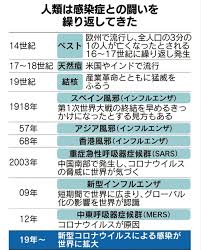 | ・100年前(1918年1月~1920月12月)「スペインかぜ(情報がスペイン発であったため命名)」(新型インフルエンザのパンデミック)全世界で感染者数:6億人 死者数:4~5千万人 |